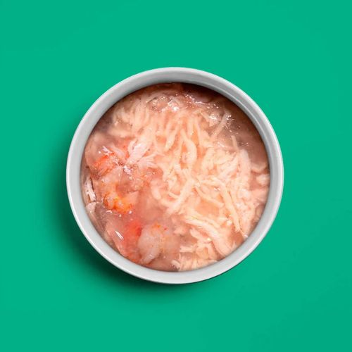Chicken & Shrimps is een smakelijke, natuurlijke aanvullende voeding voor katten, bereid met malse kipfilet en verse garnalen. Ideaal voor katten die houden van een eiwitrijke en licht verteerbare maaltijd.