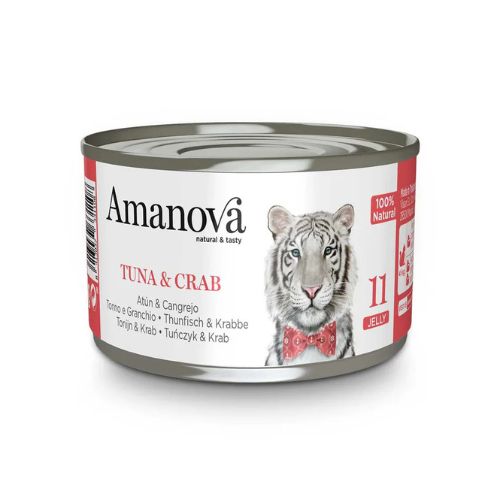 Tuna & Crab in gelatine is een heerlijke, natuurlijke aanvullende voeding voor katten, bereid met hoogwaardige tonijn en smakelijke krab. Ideaal voor katten die dol zijn op de smaak van vis en zeevruchten.