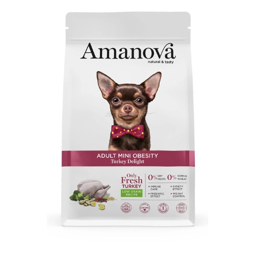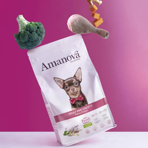 AM Adult Mini Obesity Turkey Delight is speciaal ontwikkeld voor volwassen honden van kleine rassen die ondersteuning nodig hebben bij gewichtsbeheersing. Deze hypoallergene light voeding is bereid met vers kalkoenvlees als enige dierlijke eiwitbron. Kalkoen is van nature rijk aan hoogwaardige eiwitten en arm aan vet en cholesterol, waardoor het een uitstekende keuze is voor honden met overgewicht.