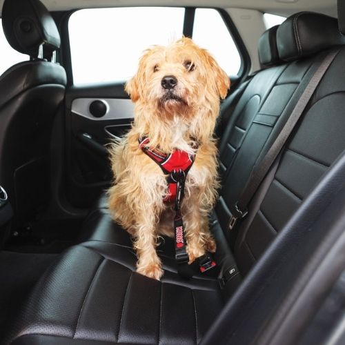 Je hond zal dankzij de gordel niet van de achterbank kunnen, niet om gezellig bij je te zijn maar ook niet als je plots moet remmen.