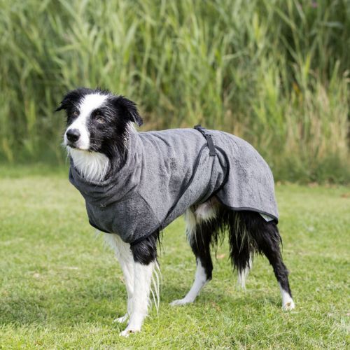 Badjas voor honden van zacht badstof helpt je hond snel drogen en beschermt tegen afkoeling.