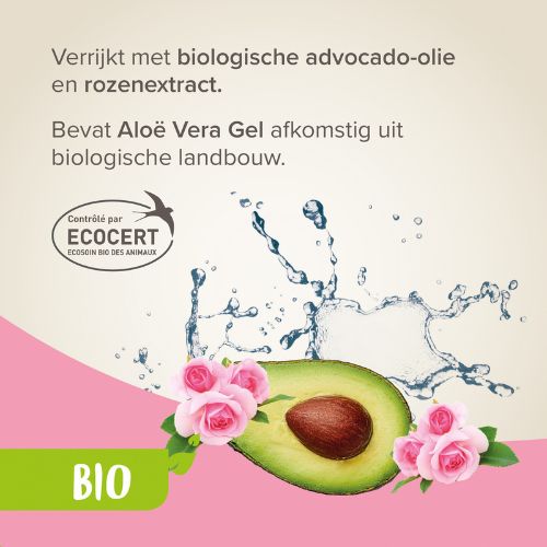 De shampoo is verrijkt met biologische avocado-olie en rozenextract. Avocado-olie staat bekend om zijn voedende eigenschappen en helpt de vacht soepel en zacht te houden. Rozenextract draagt bij aan een frisse verzorging en natuurlijke glans. Het Ecocert label garandeert de natuurlijke oorsprong van de gebruikte ingrediënten. De verpakking is gemaakt van duurzaam geteeld suikerriet en bestaat uit 100% recyclebaar plastic.