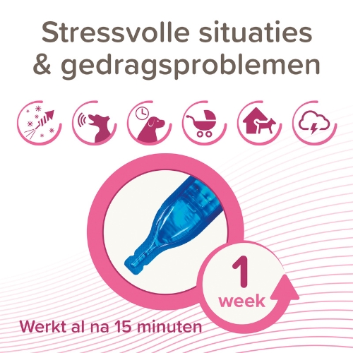 - Spot-on: Voor langdurige ondersteuning thuis én onderweg. De pipetten geven gedurende een week een rustgevend effect. Geschikt bij socialisatie, vuurwerkangst of veranderingen in de omgeving. Eén verpakking bevat 3 pipetten (3 weken werkzaamheid in totaal).