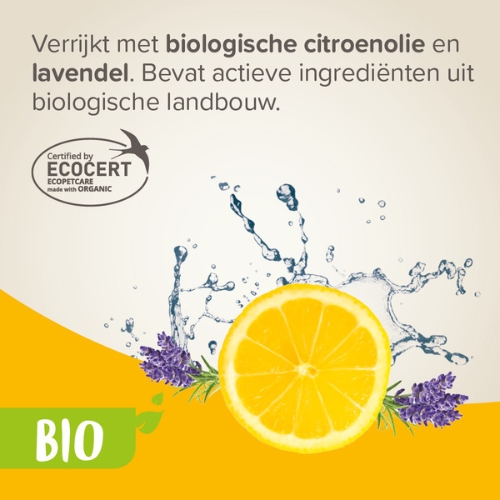 De formule is verrijkt met biologische citroenolie en lavendel. Citroenolie staat bekend om zijn reinigende eigenschappen, terwijl lavendel helpt bij het verzachten en verzorgen van de huid. Samen zorgen deze ingrediënten voor een fris en schoon gevoel zonder de natuurlijke balans van het oor te verstoren.