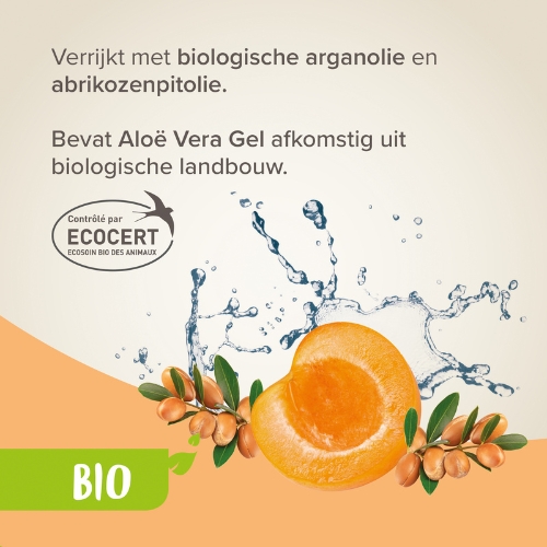 - Verrijkt met biologische aloë vera, arganolie en abrikozenpitolie
