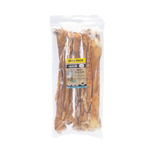 De Konijnenhuid Rol met Haar wordt geleverd in een verpakking van vijf rollen, waardoor je altijd een natuurlijke en functionele snack in huis hebt. Deze snack combineert kauwplezier met ondersteuning van darmgezondheid, mondhygiëne en mentale ontspanning en is daarmee een waardevolle aanvulling op het voedingspatroon van je hond.
