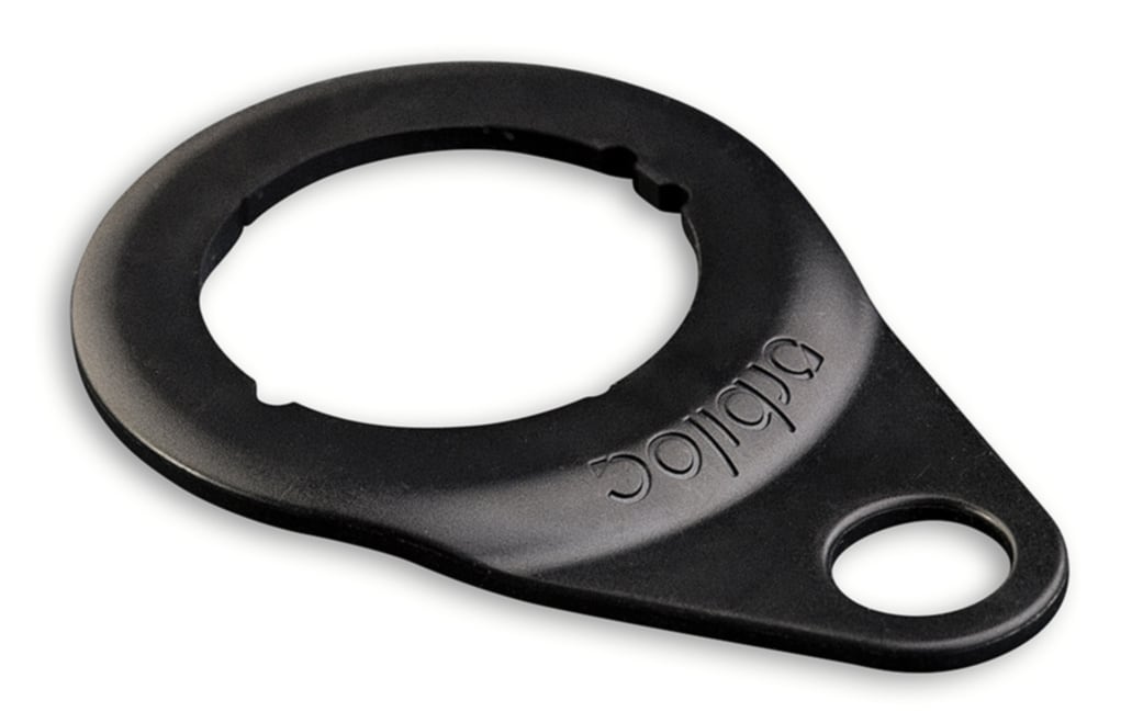 De karabijn is gemaakt van lichtgewicht metaal en de mount is gemaakt van hard plastic materiaal. De set bestaat uit twee onderdelen de Orbiloc Mount en de Orbiloc Carabiner.