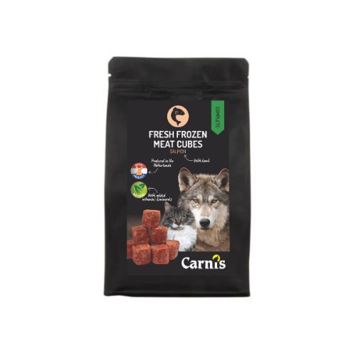 Carnis Cubes Zalm Compleet is een volledige diepvriesvoeding voor volwassen honden en katten. Deze maaltijd combineert zalm en lam voor een gevarieerde en smakelijke voeding.