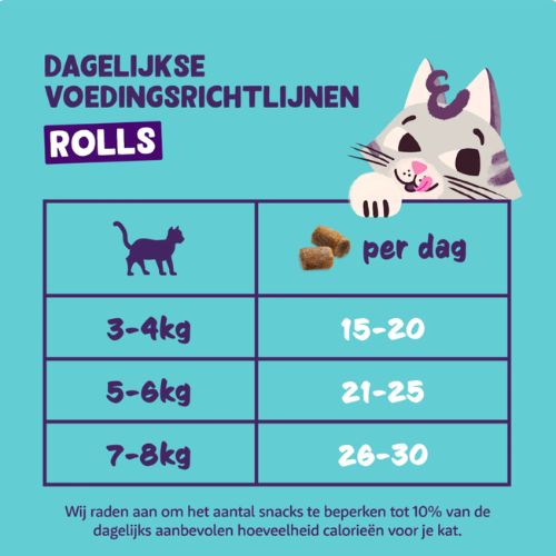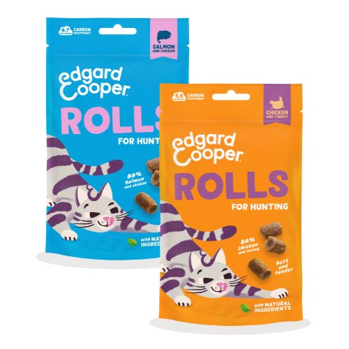 E&C Soft Rolls zijn zachte, eiwitrijke kattensnacks die perfect zijn voor spelen en belonen. Dankzij hun vorm en structuur kun je ze rollen of gooien, waardoor snacken verandert in een actief jachtspel.