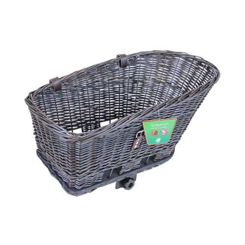 De mand is uitgevoerd in een elegante grijze kleur en heeft een natuurlijke uitstraling die perfect past bij zowel moderne als klassieke fietsen. Het stevige riet zorgt voor een robuuste constructie, terwijl het metalen rek en de solide bevestiging bijdragen aan extra stabiliteit tijdens het fietsen.
