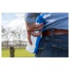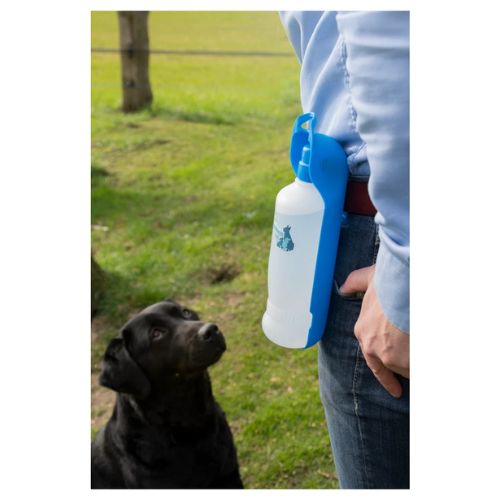 De fles is eenvoudig in gebruik: met één druk laat je het water in het geïntegreerde reservoir lopen, waar je hond direct uit kan drinken. Dankzij de anti-lek technologie hoef je je geen zorgen te maken over natte tassen of morsen. De praktische riemclip maakt het gemakkelijk om de fles aan je broek, tas of rugzak te bevestigen.
