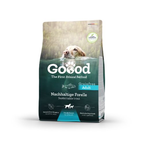 Goood Adult Forel is een hoogwaardige, graanvrije hondenvoeding die speciaal ontwikkeld is voor volwassen honden die genieten van pure, natuurlijke ingrediënten. De forel in dit recept is afkomstig uit duurzame aquacultuur, waar de vissen uitsluitend natuurlijk voer krijgen. Dat maakt dit eiwitrijk vismeel niet alleen voedzaam maar ook bijzonder goed verteerbaar. Hierdoor krijgt jouw hond precies wat hij nodig heeft om gezond, vitaal en energiek door het leven te gaan. Deze brokjes bevatten een unieke combinatie van zonnebloemolie, lijnzaad en een hoge hoeveelheid omega 3- en 6-vetzuren. Deze essentiële vetzuren dragen actief bij aan een glanzende vacht, een sterke huidbarrière en een optimaal immuunsysteem.