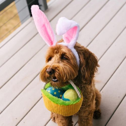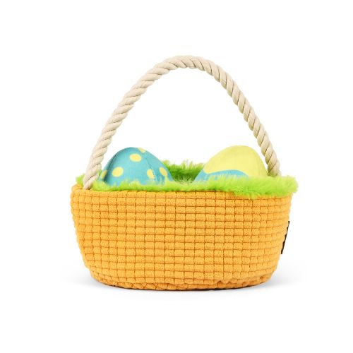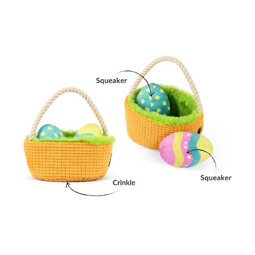 Maak Pasen extra leuk voor jouw hond met de Hippity Hoppity Eggs-cellent Basket van PLAY Pet Lifestyle and You! Dit feestelijke speeltje ziet eruit als een paasmandje met twee losse eieren, elk met een pieper voor nog meer speelplezier. Jouw pup zal dol zijn op het ontdekken van de verstopte verrassingen en de knisperende sensatie van het mandje.