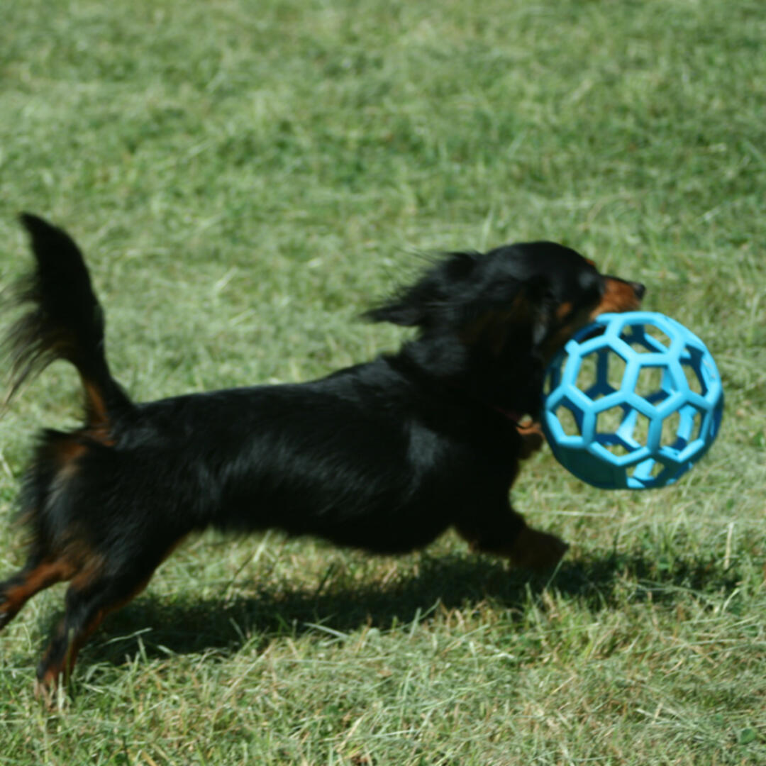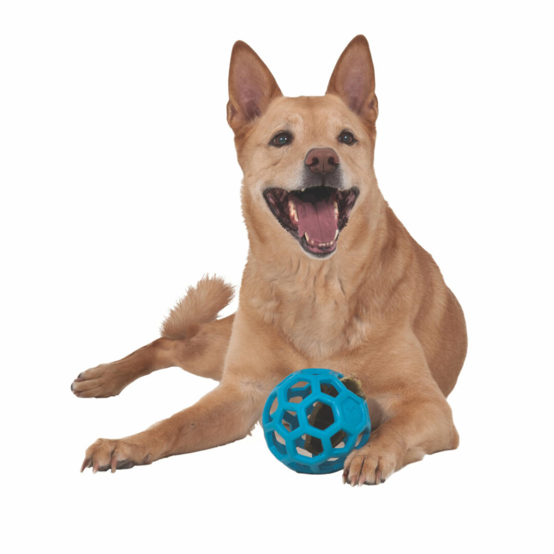 Het unieke open design maakt het mogelijk om snoepjes en snacks in de bal te steken voor uren van entertainment voor je hond. De gatenbal is gemakkelijk weg te gooien, te schoppen en is zacht in de mond van je hond.