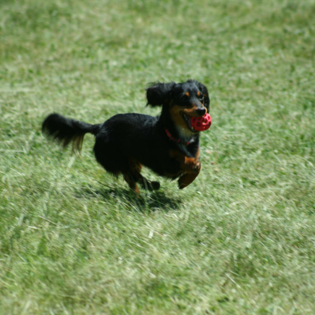 - Gebruik hem als voerspeeltje. Vul hem met de favoriete snack van je hond en hij doet er langer over.