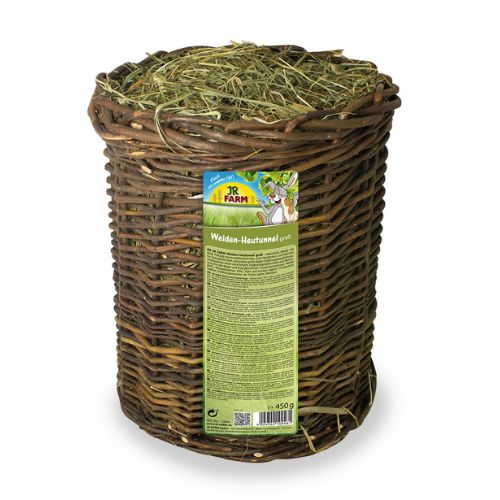De JR Farm Wilgen Hooitunnel is gemaakt van onbewerkte wilg en tot de rand gevuld met geurend bergweidehooi uit natuurlijke weilanden. Dit hooi, bestaande uit verschillende grassoorten en kruiden, vormt een soortgeschikte voedingsbasis voor kleine dieren en dwergkonijnen.