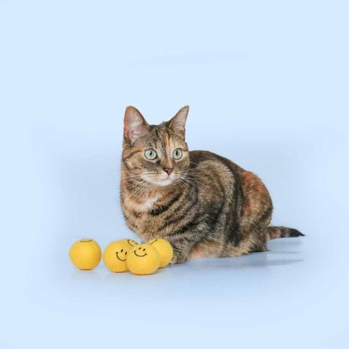 Met de Keep on Smiling vilten balletjes krijgt jouw kat speelse en vrolijke speeltjes die zorgen voor urenlang vermaak. De gele balletjes met grappige gezichtjes stimuleren jouw kat om te jagen, slaan en spelen.