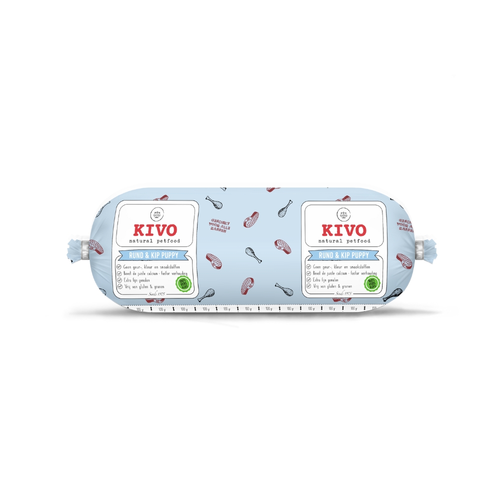Rund & Kip Puppy Compleet is afgemalen op het allerkleinste mes dat KIVO heeft. Ook is de verhouding bot verlaagd tot 10% waardoor de calcium & fosfor verhouding veel beter is voor jouw groeiende hond. Dit voorkomt namelijk onder andere groeipijnen.
