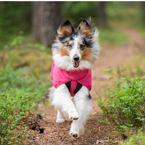 KuoriPomppa is een veelzijdige jas voor honden met een dichte vacht en voor koudegevoelige honden. Het werkt ook als een regenjas bij warmer weer. KuoriPomppa kan individueel gebruikt worden als regenjas, maar werkt ook goed als bescherming over een middenlaag zoals de JumppaPomppa.