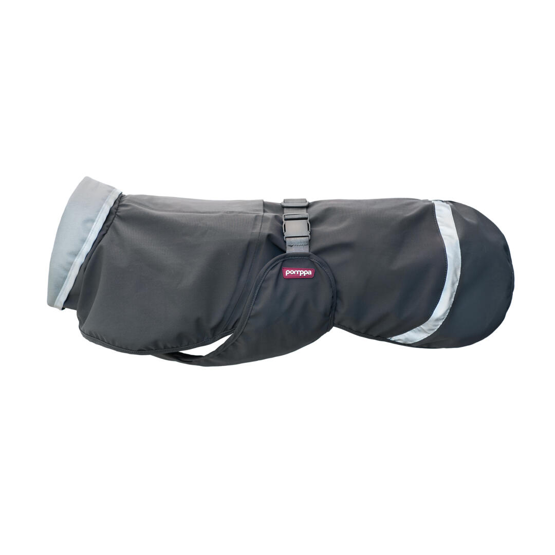 KuoriPomppa, de ongevoerde hondenjas is de laatste toevoeging aan de Pomppa regenkleding. Het beschermd de hond tegen regen, wind en modder. KuoriPomppa heeft dezelfde geliefde eigenschappen als de andere Pomppa jassen, maar nu met enkele nieuwe updates!