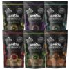 De meat chunks zijn er in de varianten gevogelte, rund/hert, lam, rund en kip/zalm en zijn verpakt per 200g in een 100% recyclebare en handige afsluitbare verpakking.