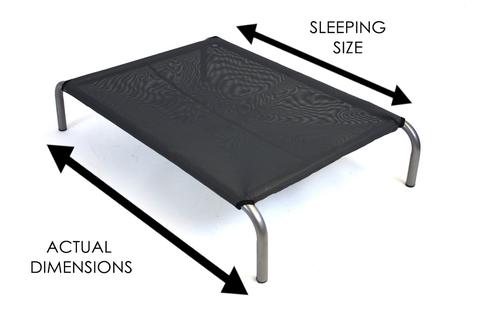 Extra Extra Large Hondenstretcher Effectieve afmetingen cm – B89 x L145 x H28 Slaap afmetingen cm – B89 x L128 cm Maximale gewicht – 100kg Geschikt voor Hele grote rassen & honden die houden van delen.