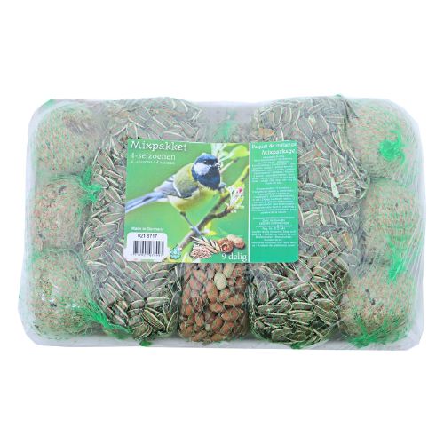 Het 4-seizoenen mixpakket voor vogels bevat meerdere soorten vogelvoer die elk hun eigen voedingswaarde hebben. De combinatie van vetrijke mezenbollen, energierijke pinda’s en voedzame zonnebloempitten zorgt voor een aantrekkelijk menu voor veel vogelsoorten.