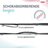 - Schokabsorberende bungee: De flexibele bungee vangt plotselinge bewegingen op en verdeelt de spanning gelijkmatig voor een soepelere en comfortabelere wandeling. Gebruik hem met of zonder bungee, afhankelijk van je voorkeur.