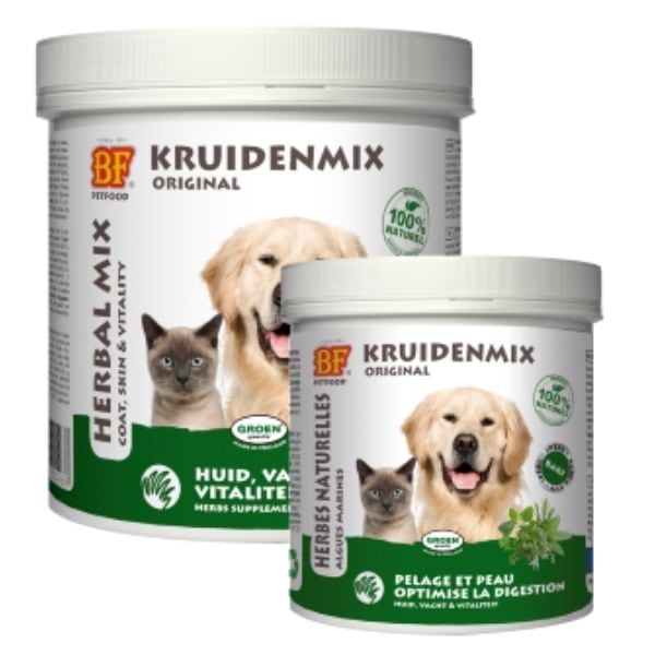 De gezonde en orginele BIOFOOD natuurkruiden bevatten natuurlijke vitaminen, mineralen en sporenelementen, ter ondersteuning van huid en vacht, de stofwisseling, vertering, vitaliteit, bij gras en ontlasting eten en de algemene gezondheid. Ideaal als aanvulling bij droog- en natvoer, vers vleesvoeding en BARF. Bij BARF kunt u de natuurkruiden verwerken in de groentemix. Voor alle katten- en hondenrassen.