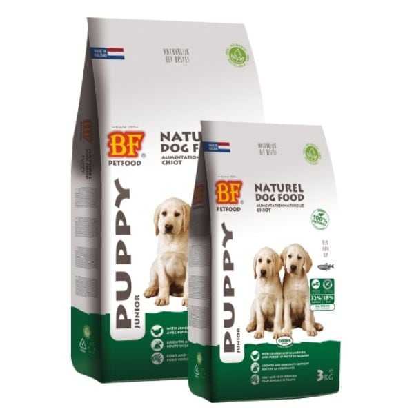 BIOFOOD puppy voeding heeft alles wat een jonge, opgroeiende hond van nature nodig heeft. Ondersteunt groei, ontwikkeling, huid en vacht, weerstand, gewrichten en gebit. Het lage calcium gehalte zorgt er voor dat de brok ook zeer geschikt is voor middel/grote rassen m.b.t. groeipijn en skeletondersteuning. Zonder chemische toevoegingen. Gezonde voeding die zorgt voor een optimale vertering, ontlasting en een goede conditie van uw hond.