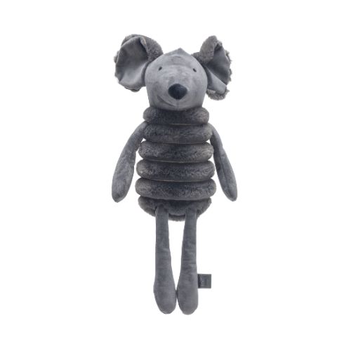 Deze knuffel is zonder pieper, wat zorgt voor rust in huis. Combineer de Reza Muis met de bijpassende Designed by Lotte Reza hondenkussens of manden voor een harmonieus geheel.