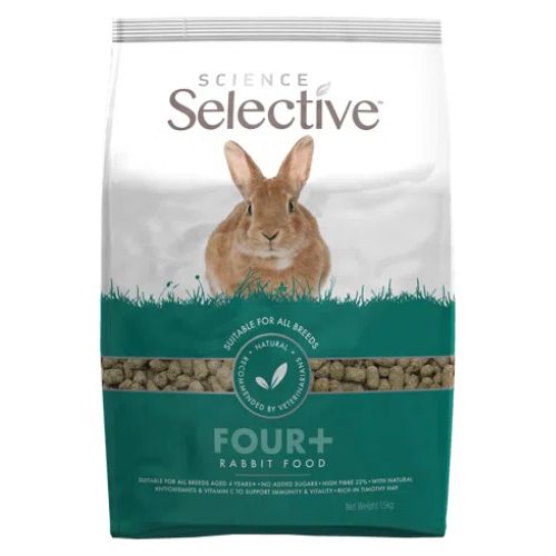 Science Selective Rabbit 4+ bestaat uit volledig geëxtrudeerde brokjes, waardoor selectief eten wordt voorkomen. Elke hap bevat alle essentiële voedingsstoffen. De voeding bevat geen toegevoegde suikers en is verrijkt met natuurlijke antioxidanten en vitamine C om het immuunsysteem te ondersteunen. Lijnzaad levert omega 3 en 6 vetzuren voor een gezonde huid en glanzende vacht. Timothy hooi en gedroogde tijm stimuleren bovendien de eetlust van oudere konijnen.