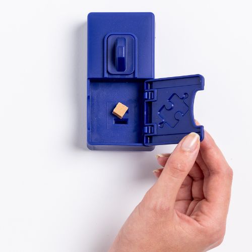 De Sela pawzle is een uitbreiding op een van de sets of los samen te stellen set van Pawzler. Deze pawzle neemt 2 plaatsen in beslag op de basisplaat. Je hond moet slider losmaken voordat het deksel omhoog getild kan worden en het snoepje ontdekt kan worden. De slider kan verschoven worden met de neus van je hond, zijn tong of poot. Je kunt de opening vullen met snoepjes, gewone voeding of zelfs hondenpindakaas.