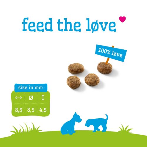 De brokken bevatten een smakelijke combinatie van kip, vis en lam en zijn geschikt voor puppy’s tot ongeveer 10 tot 12 maanden.