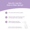 De spray is veilig te gebruiken op een breed scala aan oppervlakken, zoals tapijt, meubels, hout, beton, tegels, kunststof en kleurechte stoffen. Stain & Odour Spray laat geen kringen achter en tast tapijtvezels niet aan, waardoor hij ook geschikt is voor zichtbare en gevoelige oppervlakken in huis.