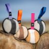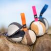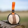 De bal is handgemaakt in Finland met duurzaam restleer van een meubelfabriek en gevoerd met echte schapenwol. Het leer zorgt voor een prettig gewicht, waardoor de bal makkelijk te gooien is. Dankzij de klittenbandsluiting kan je zelf bepalen hoe moeilijk je hond moet werken om bij de traktaties te komen. De zachte polyester rand zorgt voor een comfortabele beet voor je hond, terwijl de binnenvoering eenvoudig schoon te maken is.