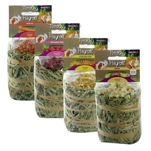 Deze heerlijke Timothy Hay Roll is gemaakt van hoogwaardig timothee hooi en afgewerkt met een smakelijke topping. Een gezonde én uitdagende traktatie voor konijnen en knaagdieren.
