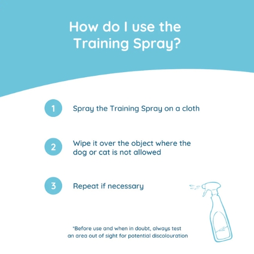 Training Spray is speciaal ontwikkeld om te helpen bij de opvoeding en training van honden en katten. Huisdieren kunnen soms ongewenst gedrag vertonen, zoals kauwen op meubels, schoenen of andere waardevolle spullen, of gaan liggen op plekken waar dit niet gewenst is. Training Spray helpt dit gedrag op een veilige en effectieve manier te ontmoedigen.