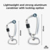 - Lichtgewicht en sterke aluminium karabijnhaak met slot optie (2 maten)