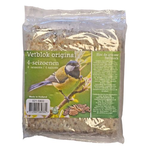 Met dit vetblok voor tuinvogels geef je vogels in je tuin een smakelijke en energierijke traktatie. Vetblokken zijn een populaire vorm van vogelvoer en worden door veel soorten tuinvogels graag gegeten. Ze bevatten essentiële vetten en oliën die vogels helpen om voldoende energie binnen te krijgen.