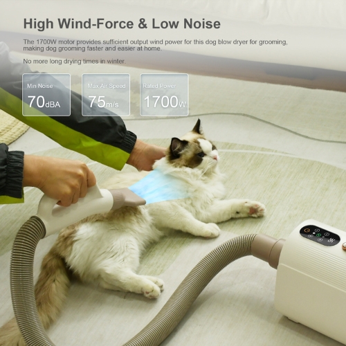 Maak van elke droogbeurt een professionele ervaring voor jouw hond met de Waterblazer + 4 Opzetstukken. Deze geavanceerde hondenfohn is ontworpen voor zowel thuistrimmers als professionele groomers die streven naar snelheid, efficiëntie en maximaal comfort voor hun viervoeter. De krachtige motor biedt vier instelbare blaaskracht standen zodat je de luchtstroom perfect kunt afstemmen op het vachttype van elke hond. Van een zachte luchtstroom voor kleine of gevoelige honden tot een krachtige straal voor dikke of dubbele vachten, deze waterblazer kan het allemaal aan. De temperatuur is eenvoudig verstelbaar tussen 36 en 60 graden waardoor je altijd op een veilige en aangename manier kunt drogen.